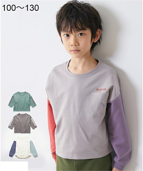 【ベルメゾン】 ソフのびフライス 長袖 Tシャツ 「スモーキーピンク×ベージュ」 ◆ 70 80 90 100 110 120 130 ◆◇ 子供服 子供 服 子供用品 男の子 女の子 子供用 Tシャツ 長袖 ◇