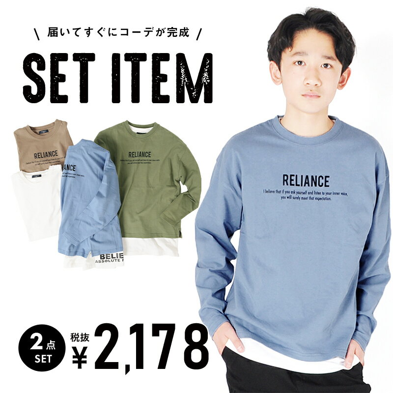 【GLAZOS】セットアイテム・天竺ドロップショルダープリント長袖Tシャツ+半袖Tシャツ 子供服 男の子 カジュアル アメカジ キッズ ジュニア 2点 ロンT 半T ビッグシルエット おしゃれ かっこいい 重ね着 レイヤード 130cm 140cm 150cm 160cm 170cm グラソス 春