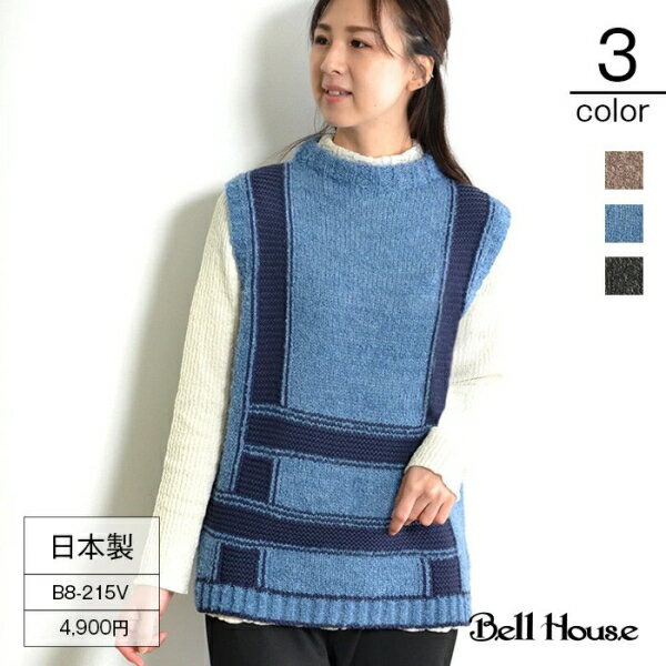ベスト ニット ボトルネック ウール混 日本製 ミセスファッション シニア 50代 60代 70代